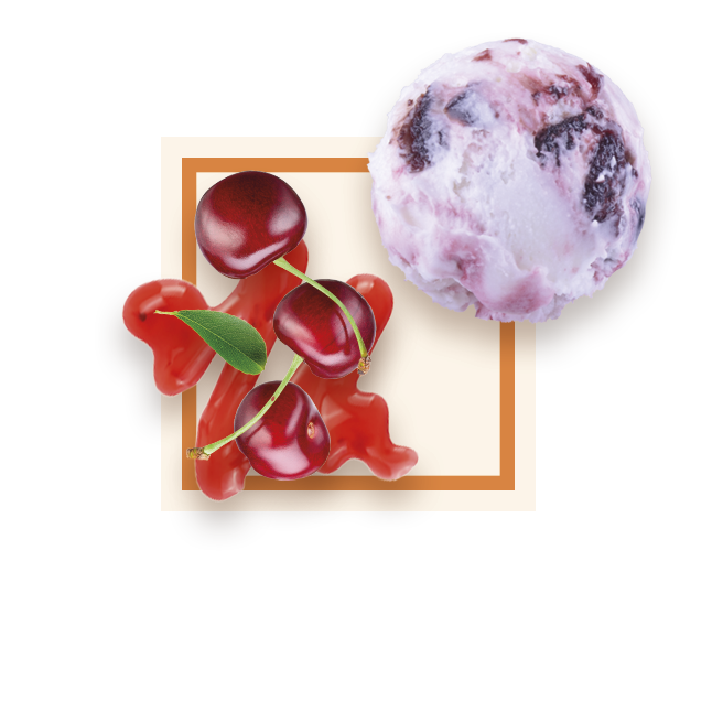 Avec morceaux de demi-cerise amarenata et marbrage au sirop de cerise.