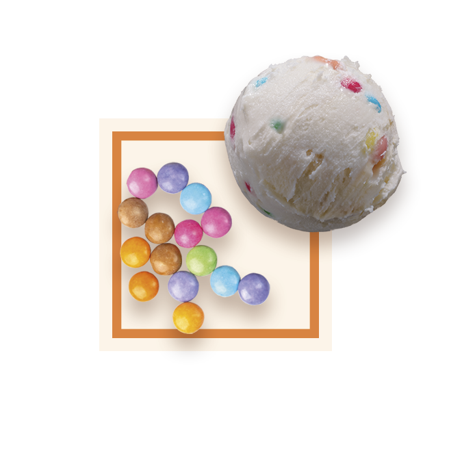 Vanille marbrée caramel avec bonbons multicolores au chocolat.