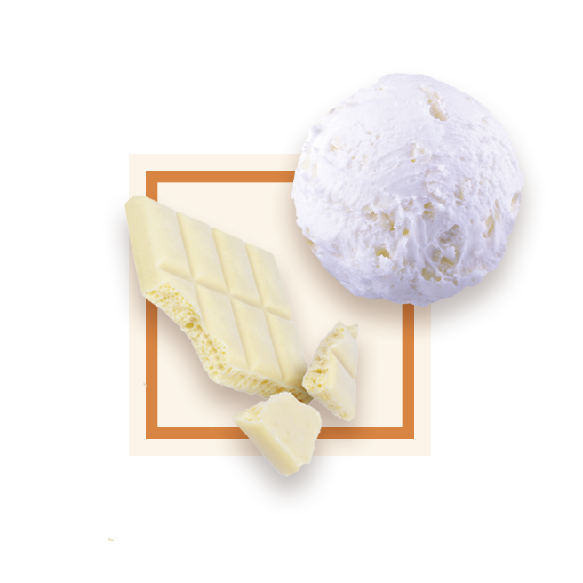 Au chocolat blanc légèrement vanillé avec copeaux de chocolat blanc.