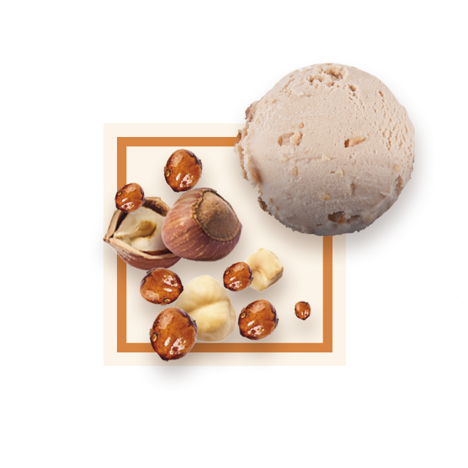 Glace noisette avec ses notes de fruits torréfiés et ses éclats de noisettes caramélisés.