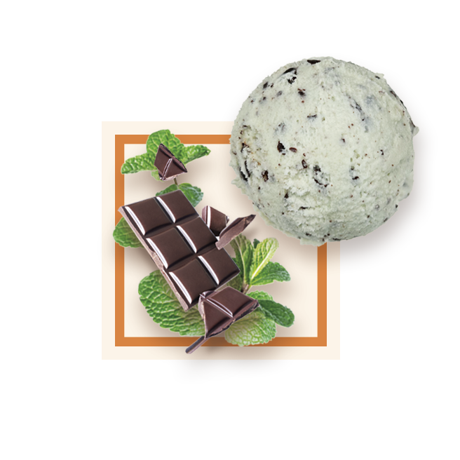 Glace à la menthe avec ses inclusions de copeaux de chocolat noir 61%.