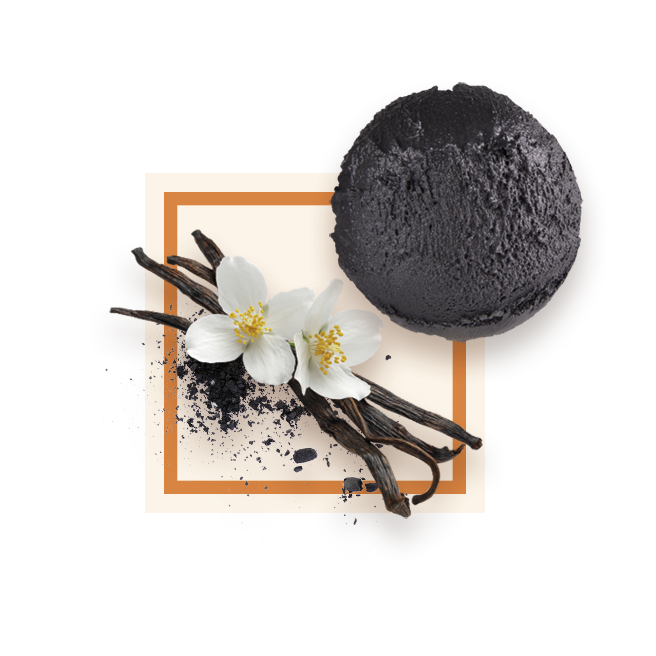 Vanille Bourbon naturellement colorée au charbon végétal.