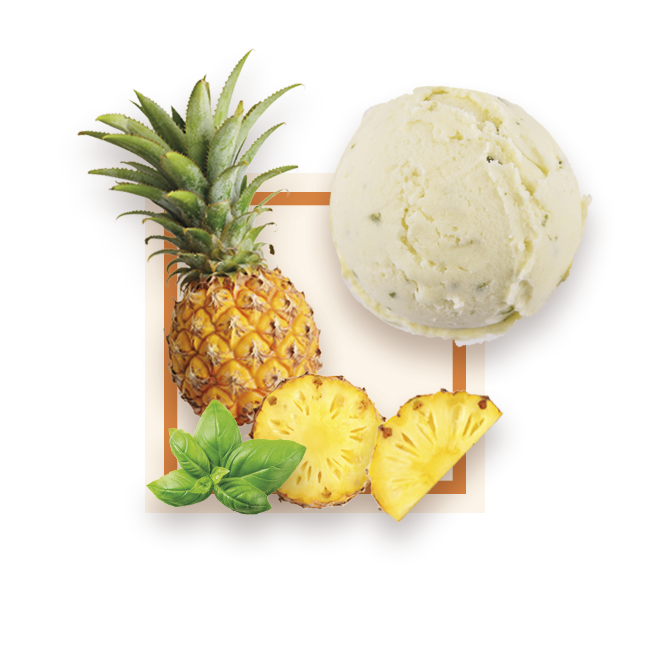 Alliance parfaite entre ananas et feuilles de basilic frais pour un sorbet tout en fraîcheur. 60% de fruits