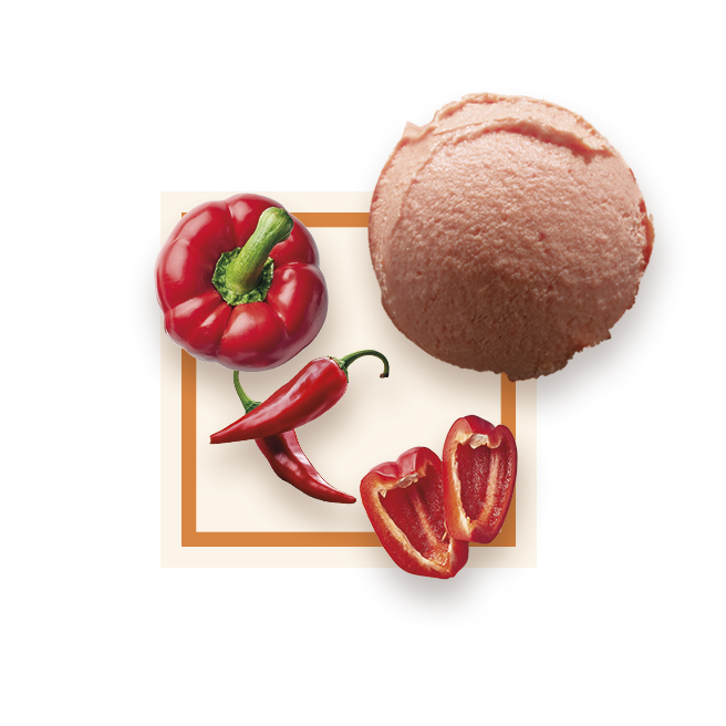 Mariage subtil de glace poivron légèrement réhaussée de piment d'Espelette (AOC).