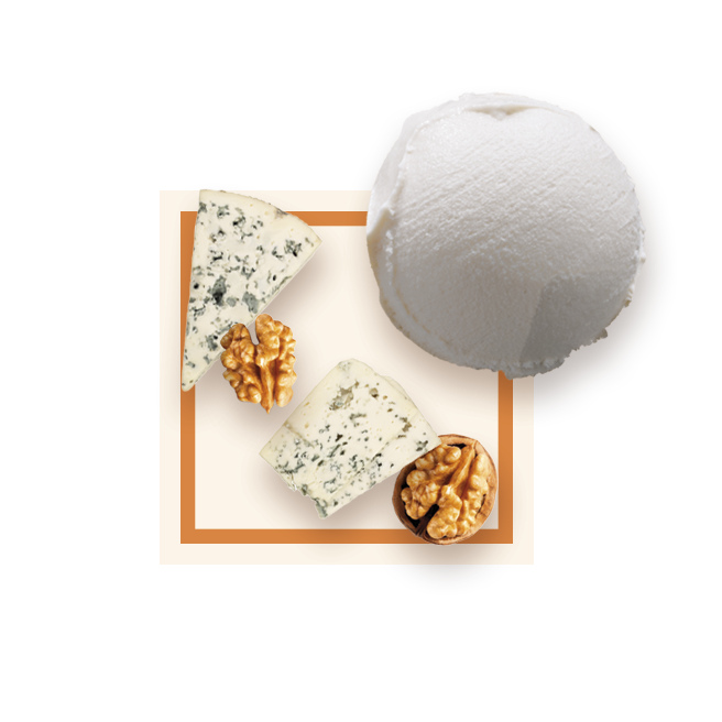 Au véritable Roquefort (AOC) affiné en Aveyron agrémenté de brisures de noix légèrement grillées.